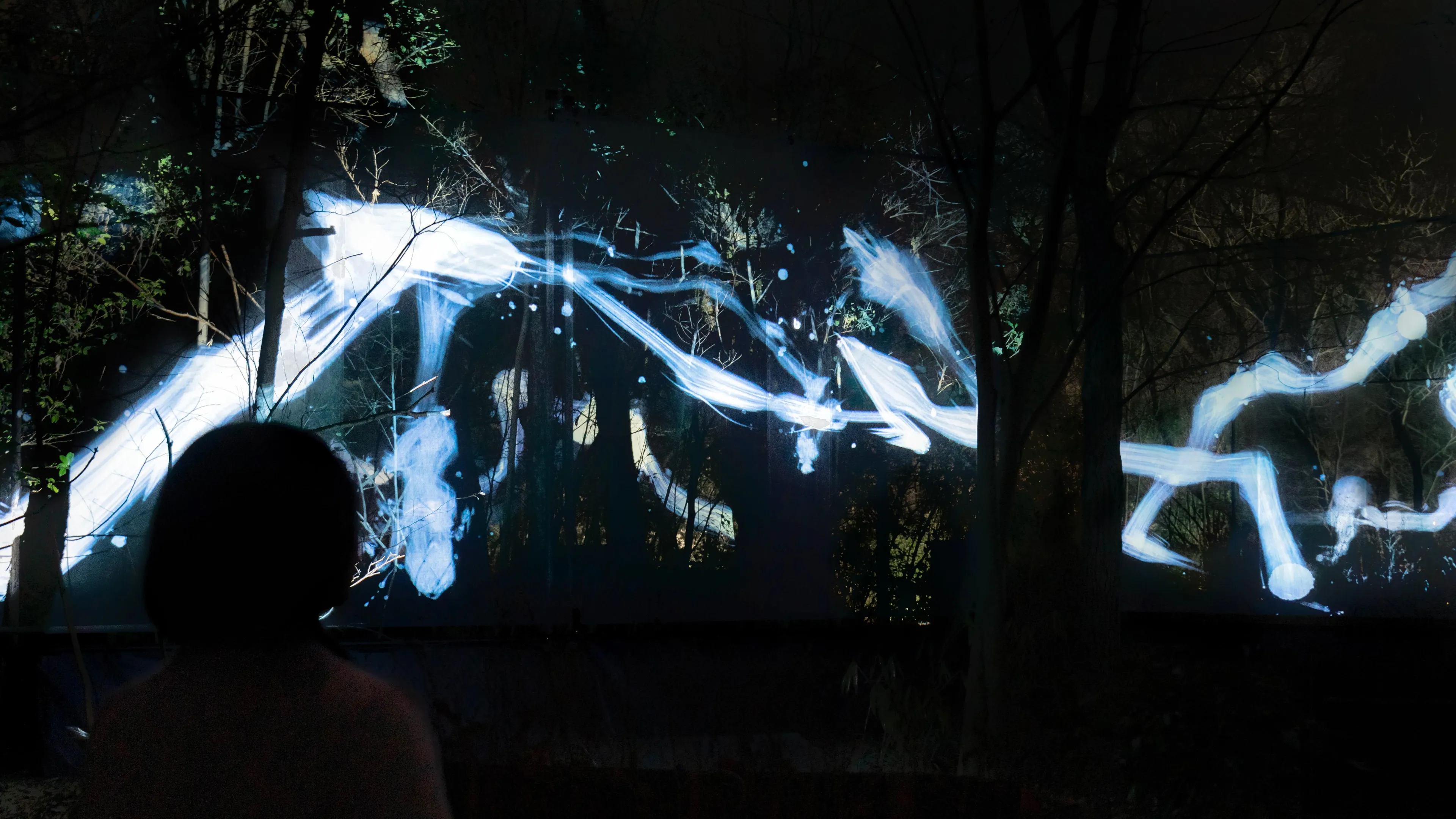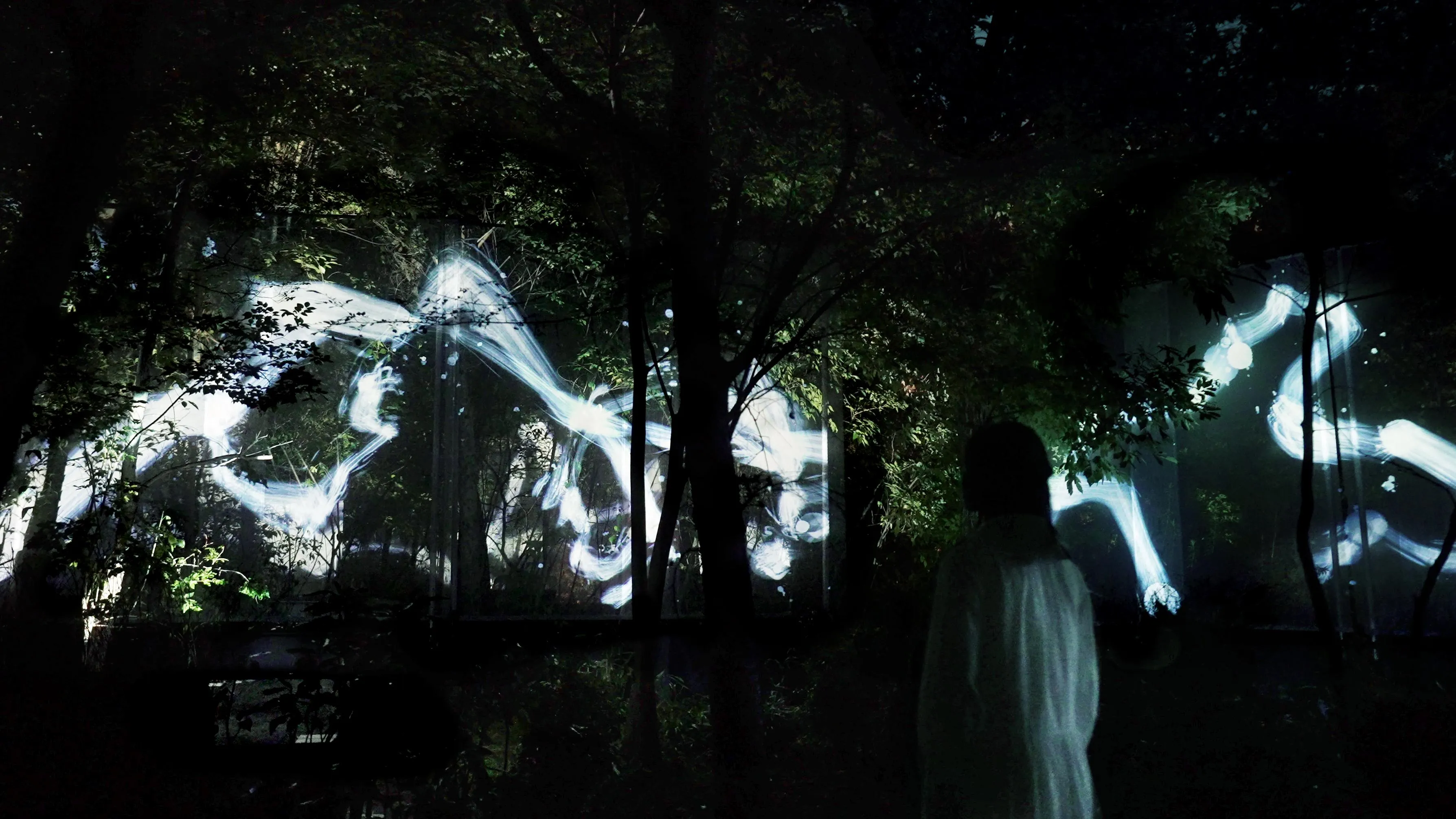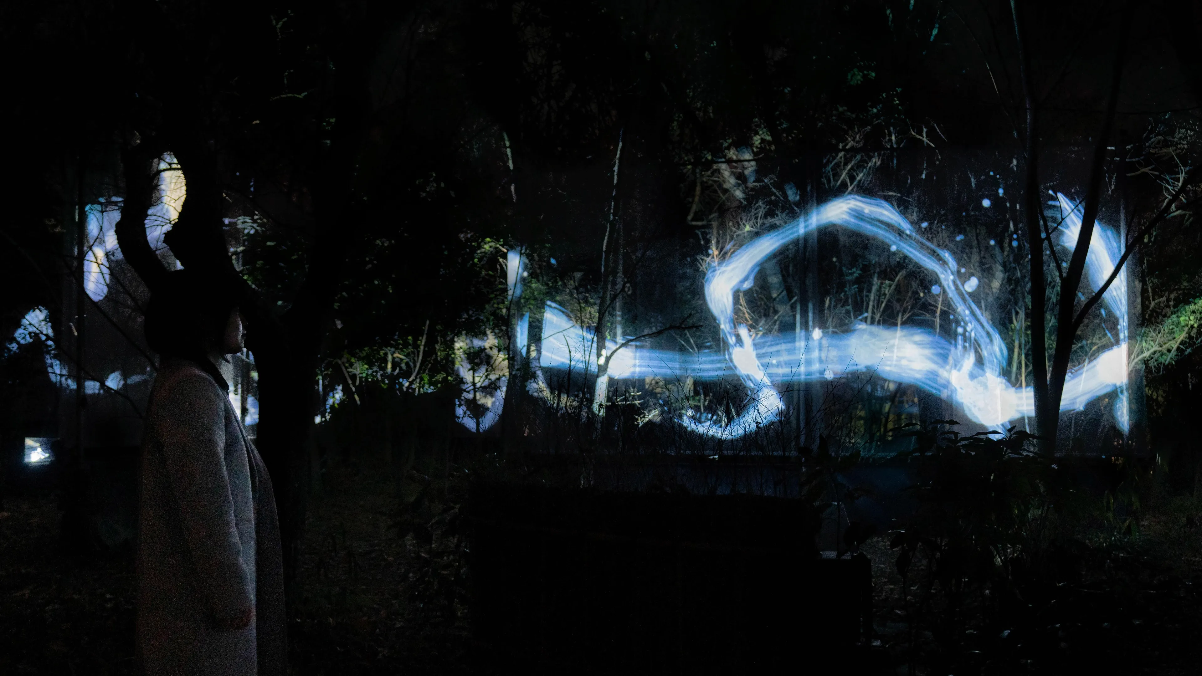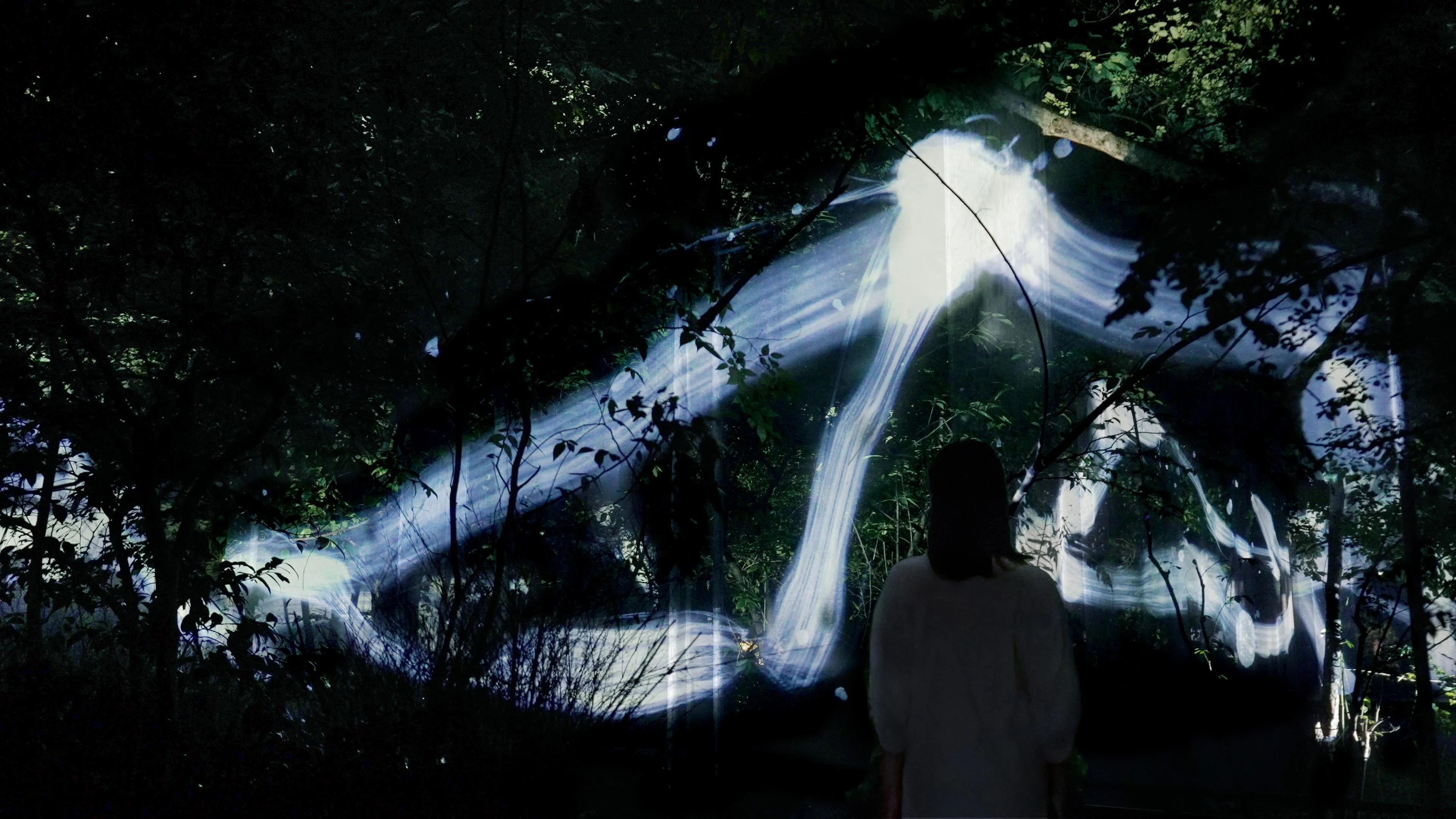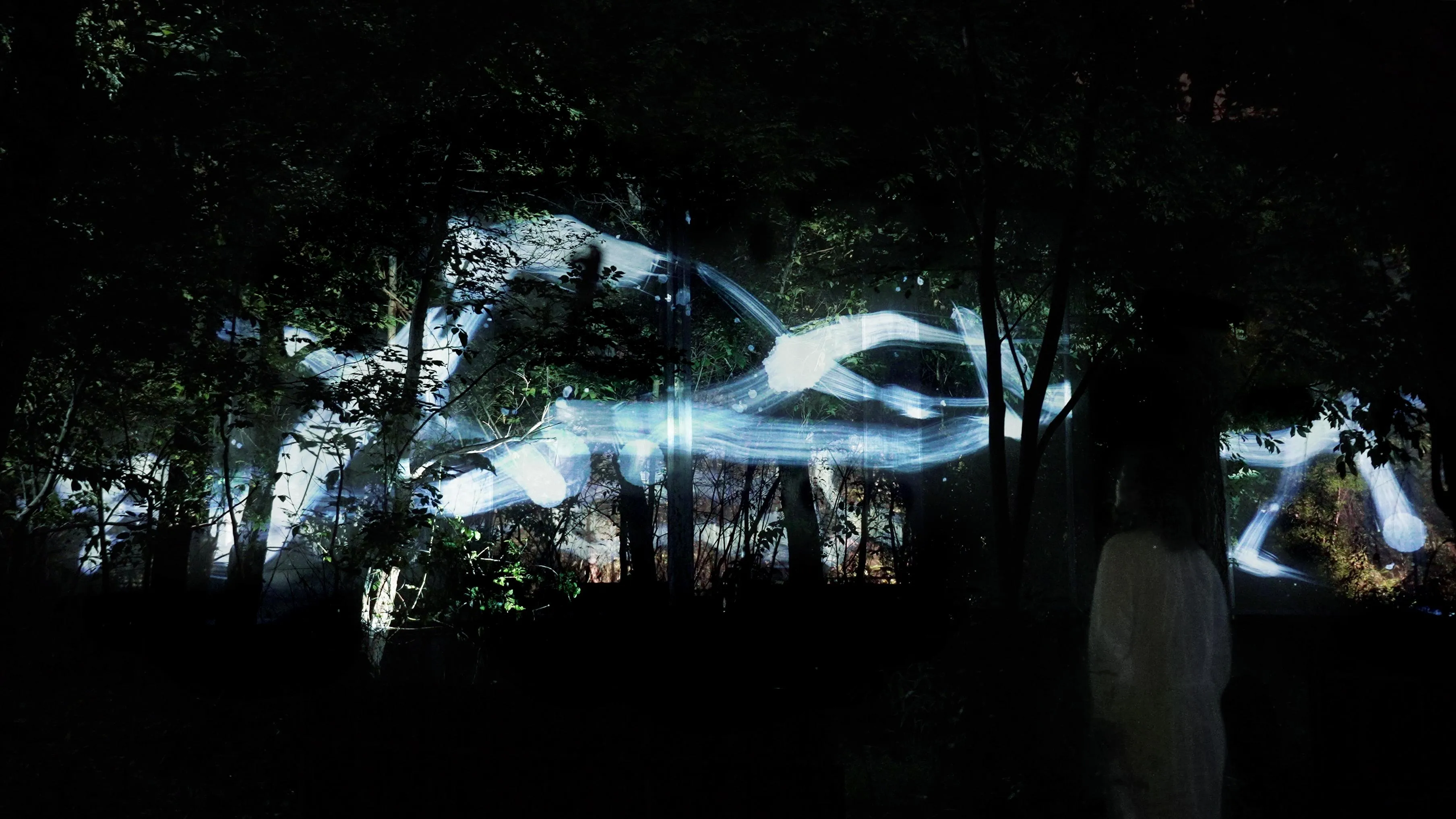 在森林中写就、一笔而成的“空书”。“空书”在森林之中重叠、交叉、旋转几层,最终消失在森林中。