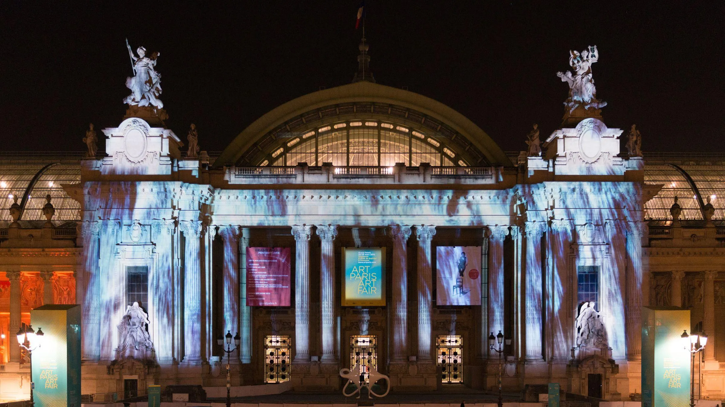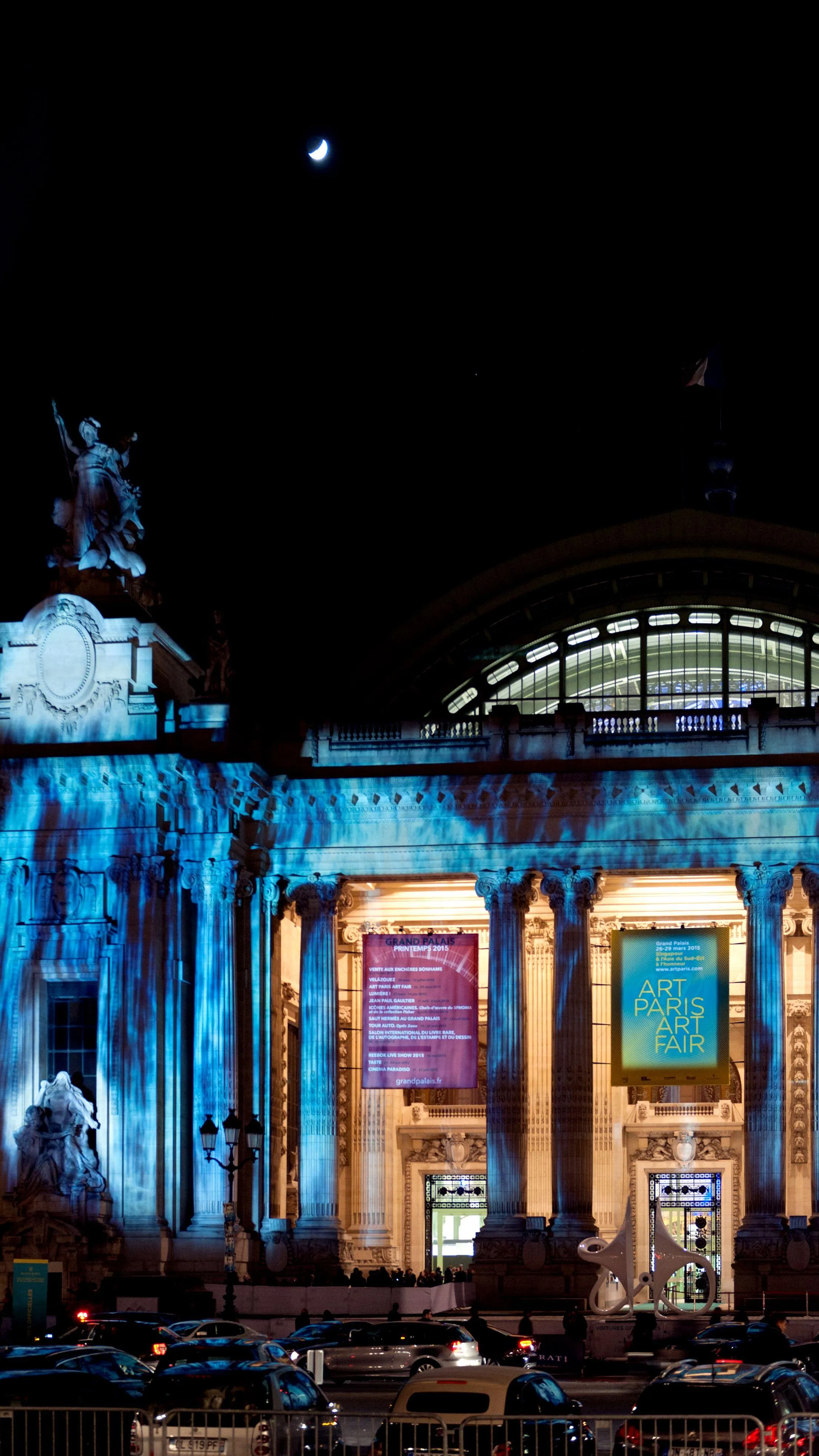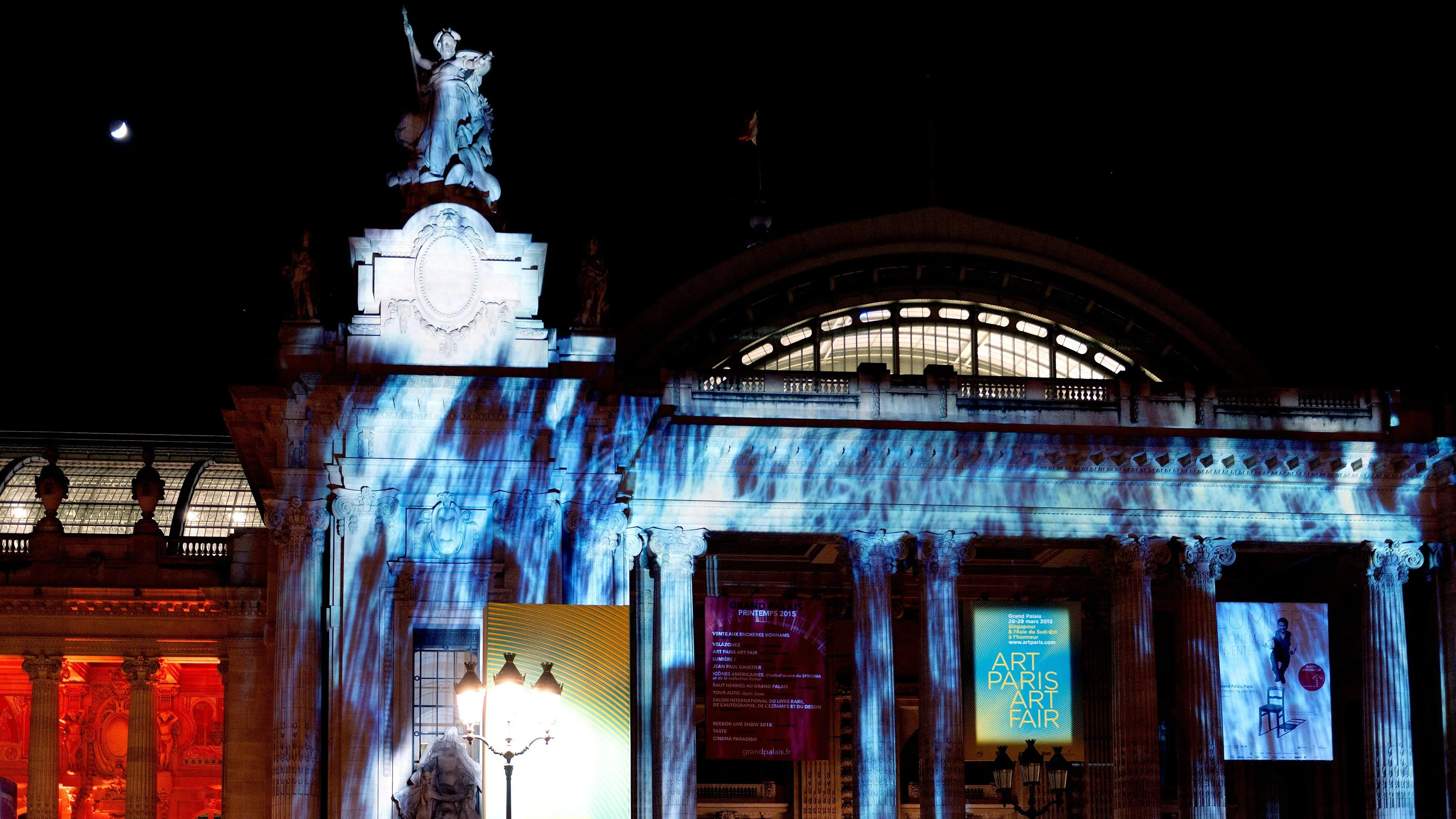 for the art paris art fair 2015, teamlab have transformed paris’ historic grand palais into an immersive, ever-evolving waterfall. the projection-mapped simulation has been calculated by tracking the movement of water falling on a 3D model of the structure in a virtual computer environment. ‘universe of water particles on the grand palais’ is expressed as continuum of hundreds of thousand of droplets that flow in accordance with how the computer calculates the interaction of the particles.(Excerpt from text)