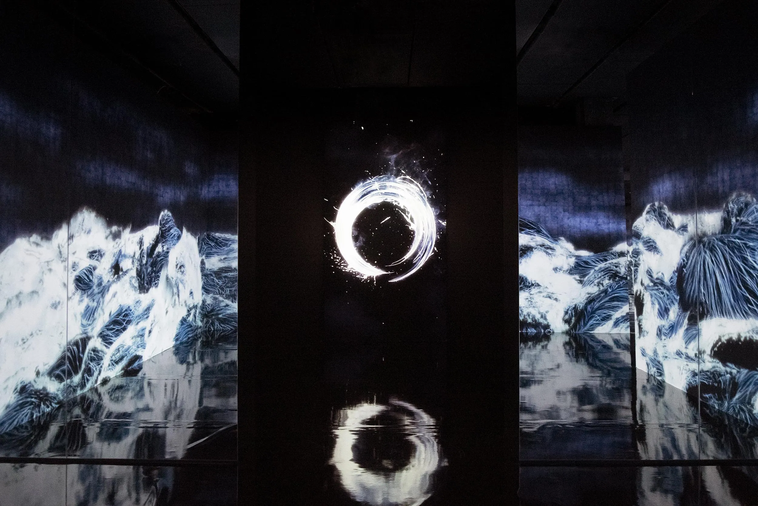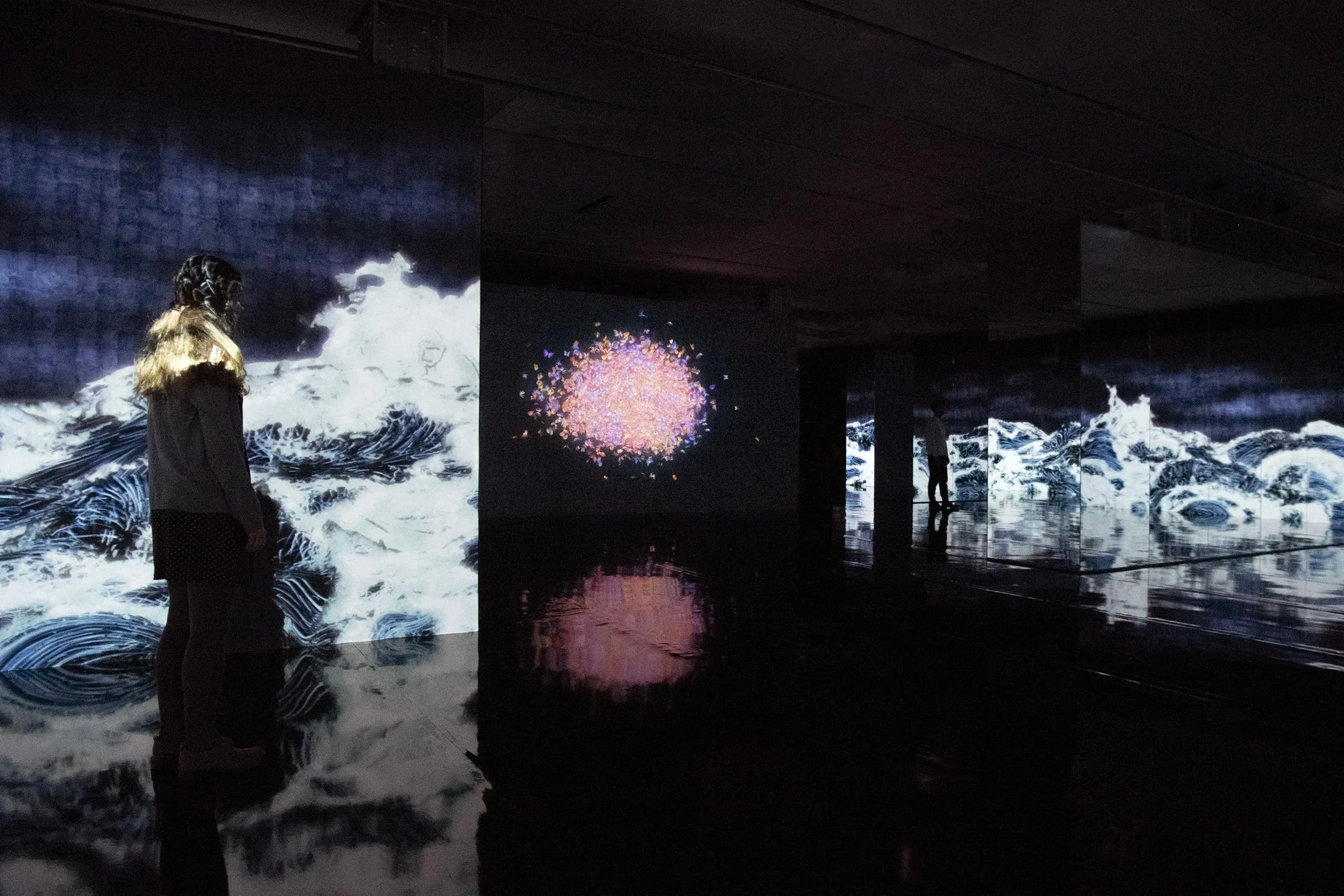 The exhibition brings together three great works by teamLab, an art collective aiming to explore through digital art a new way of relating human beings to nature and the world around us. - Espacio Fundación Telefónica