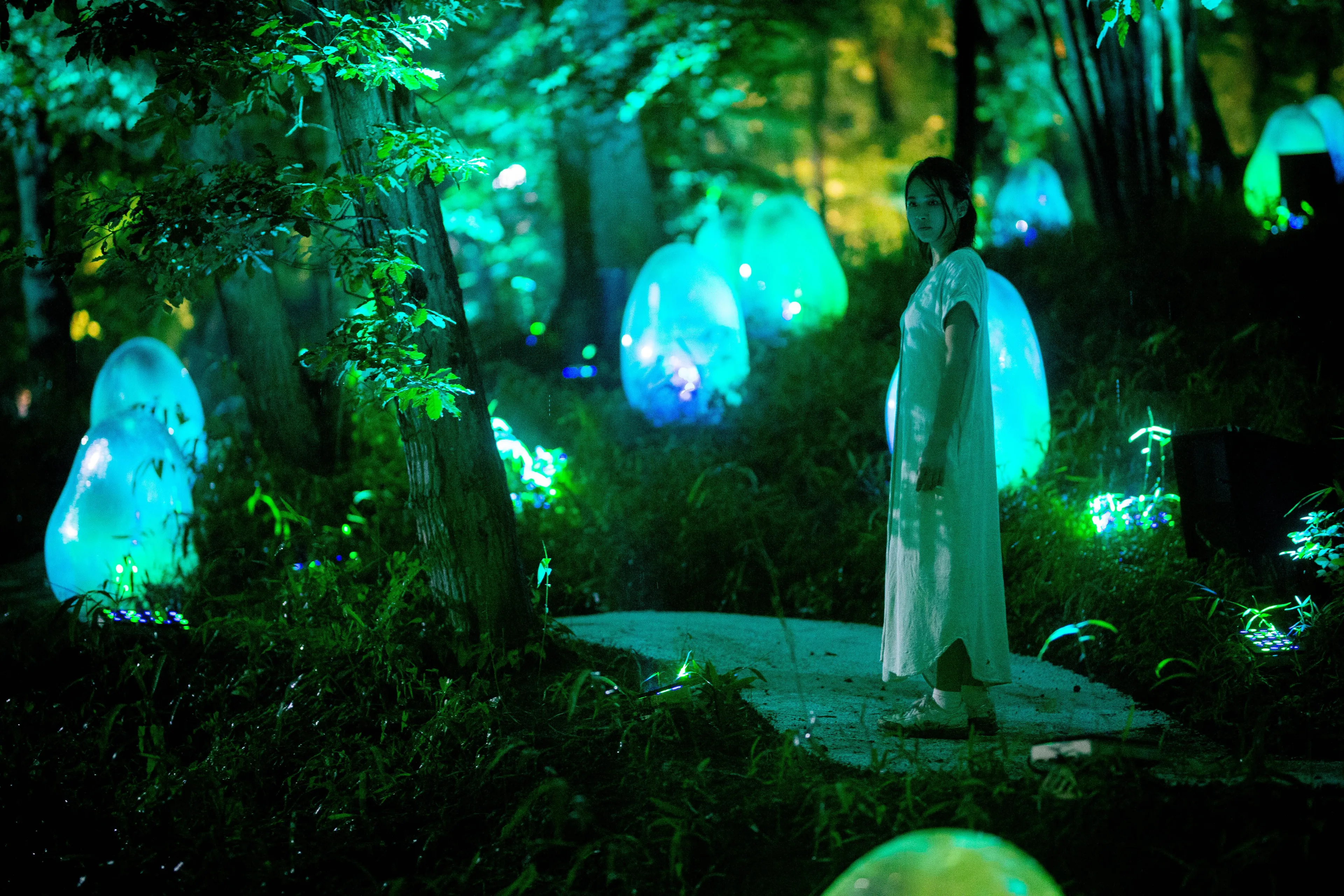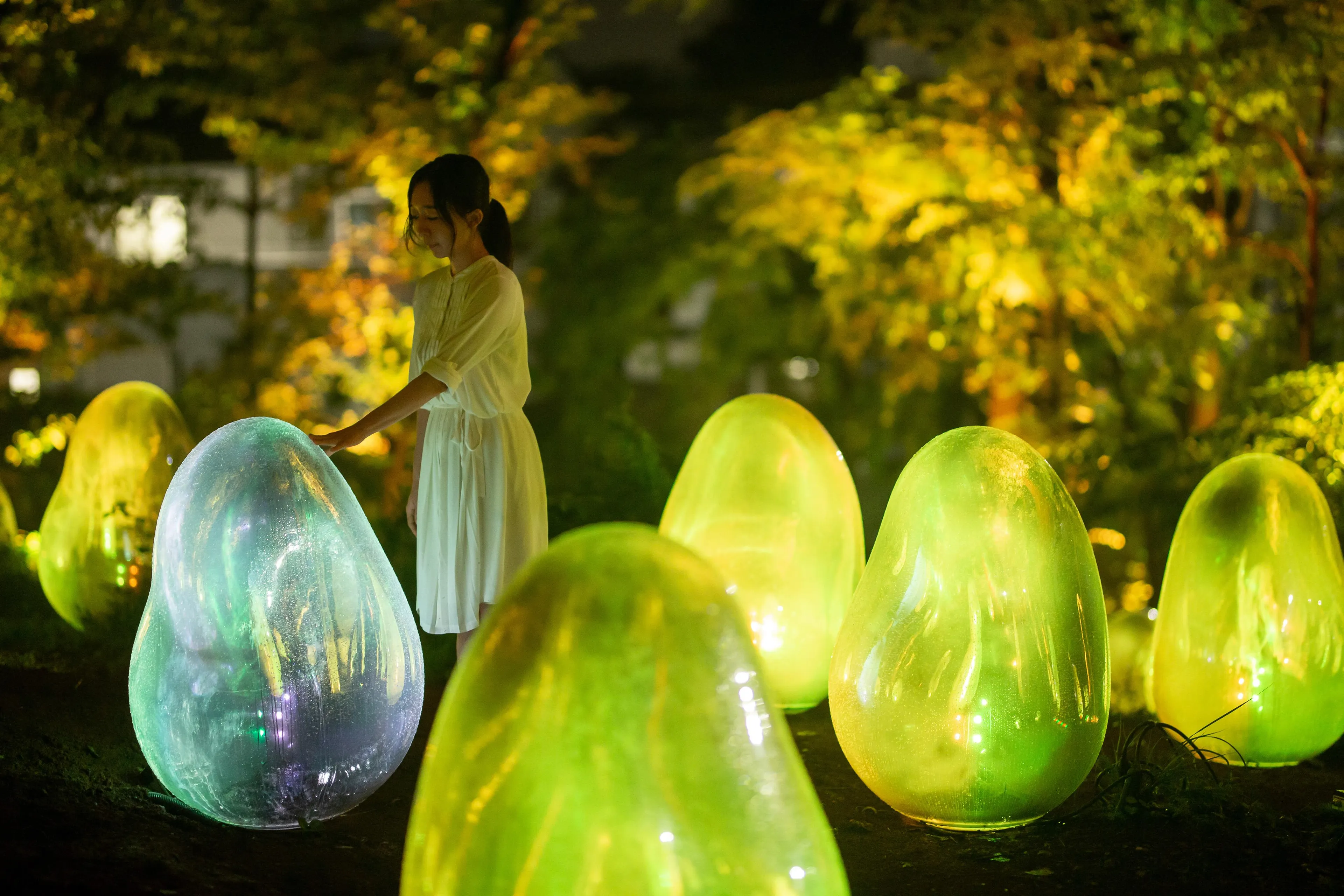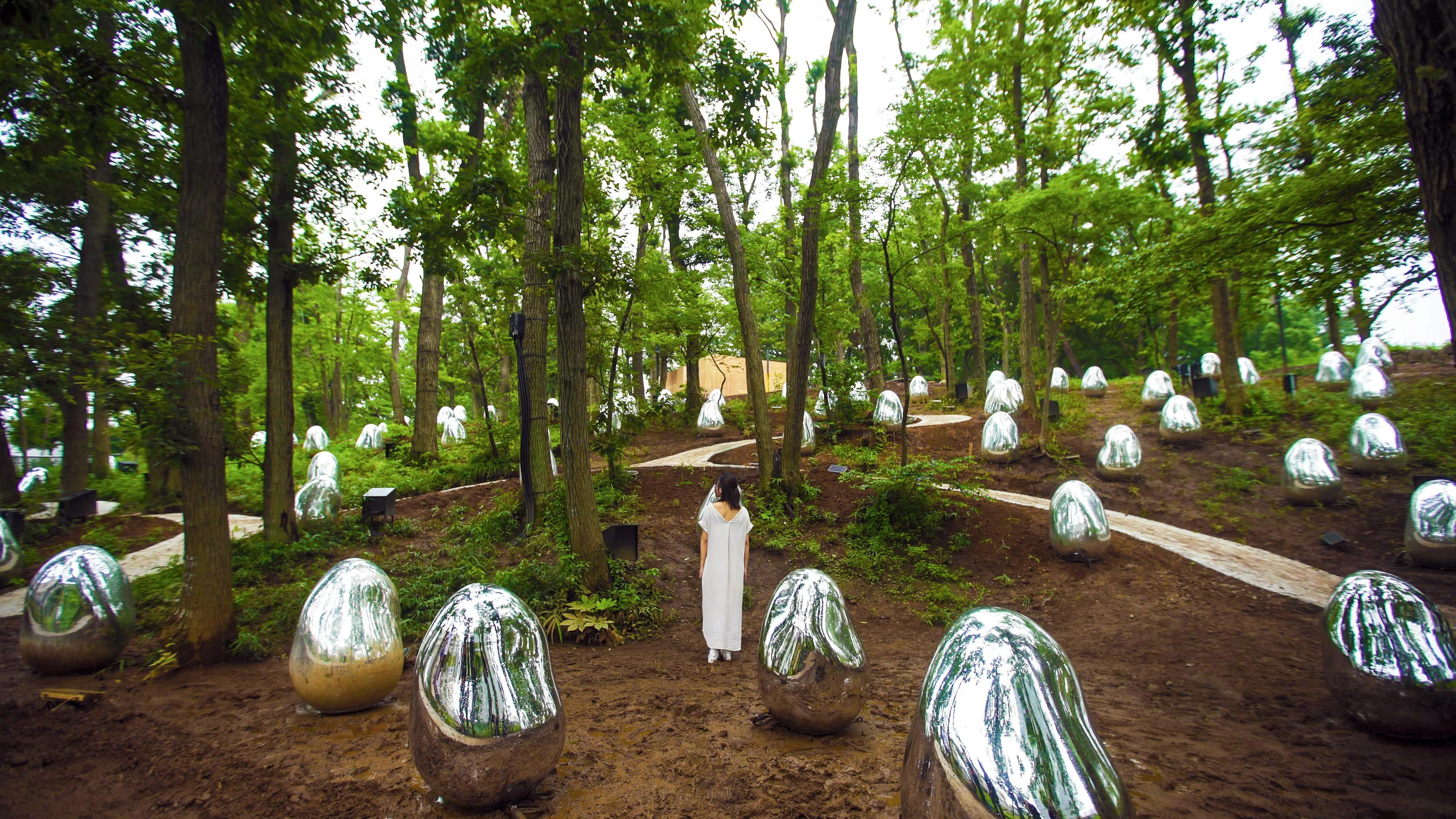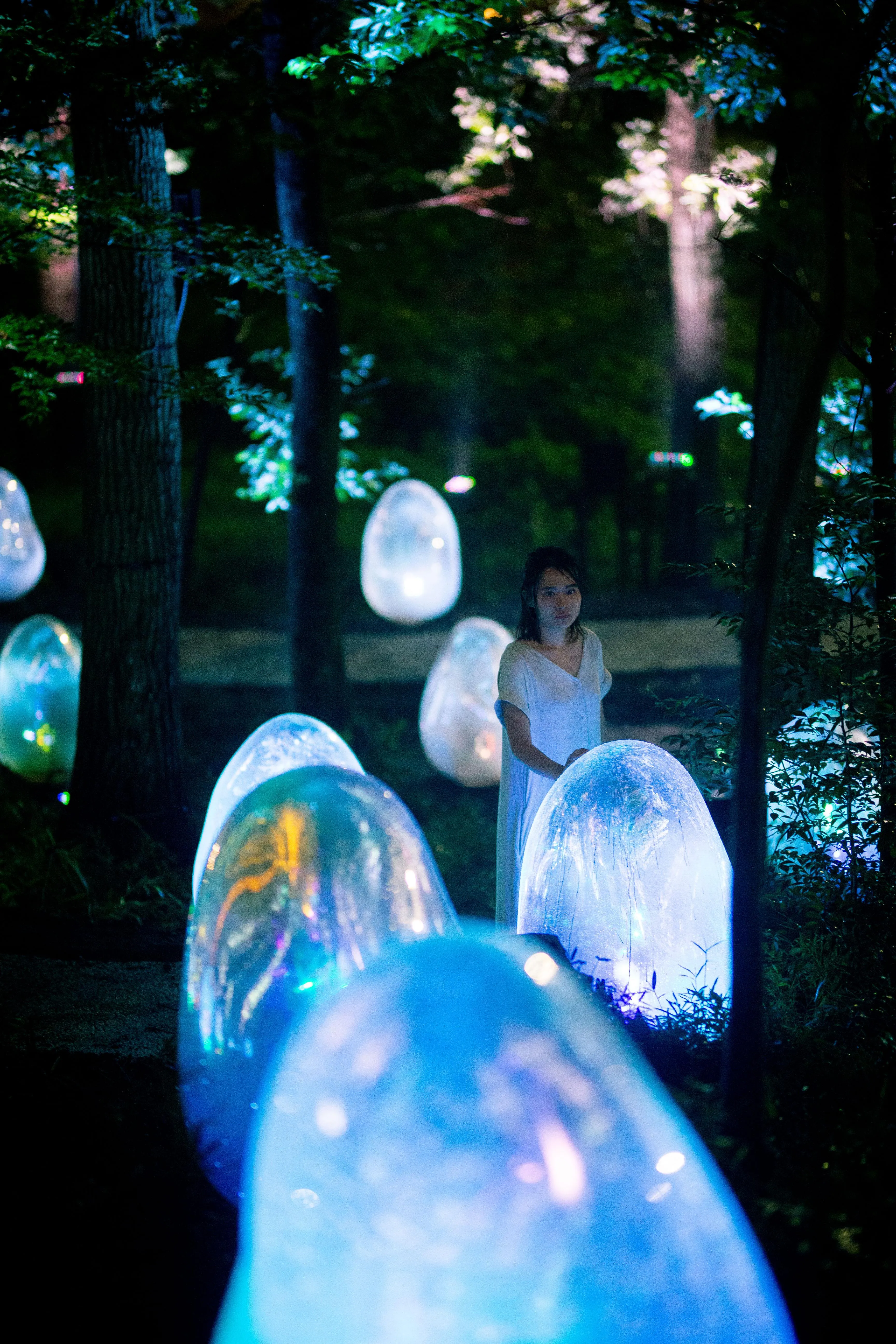A little further afield from the main complex in nearby Musashino Jurin Park, teamLab: Resonating Life in the Acorn Forest, a permanent outdoor exhibition by the art collective teamLab.(Excerpt from the text)