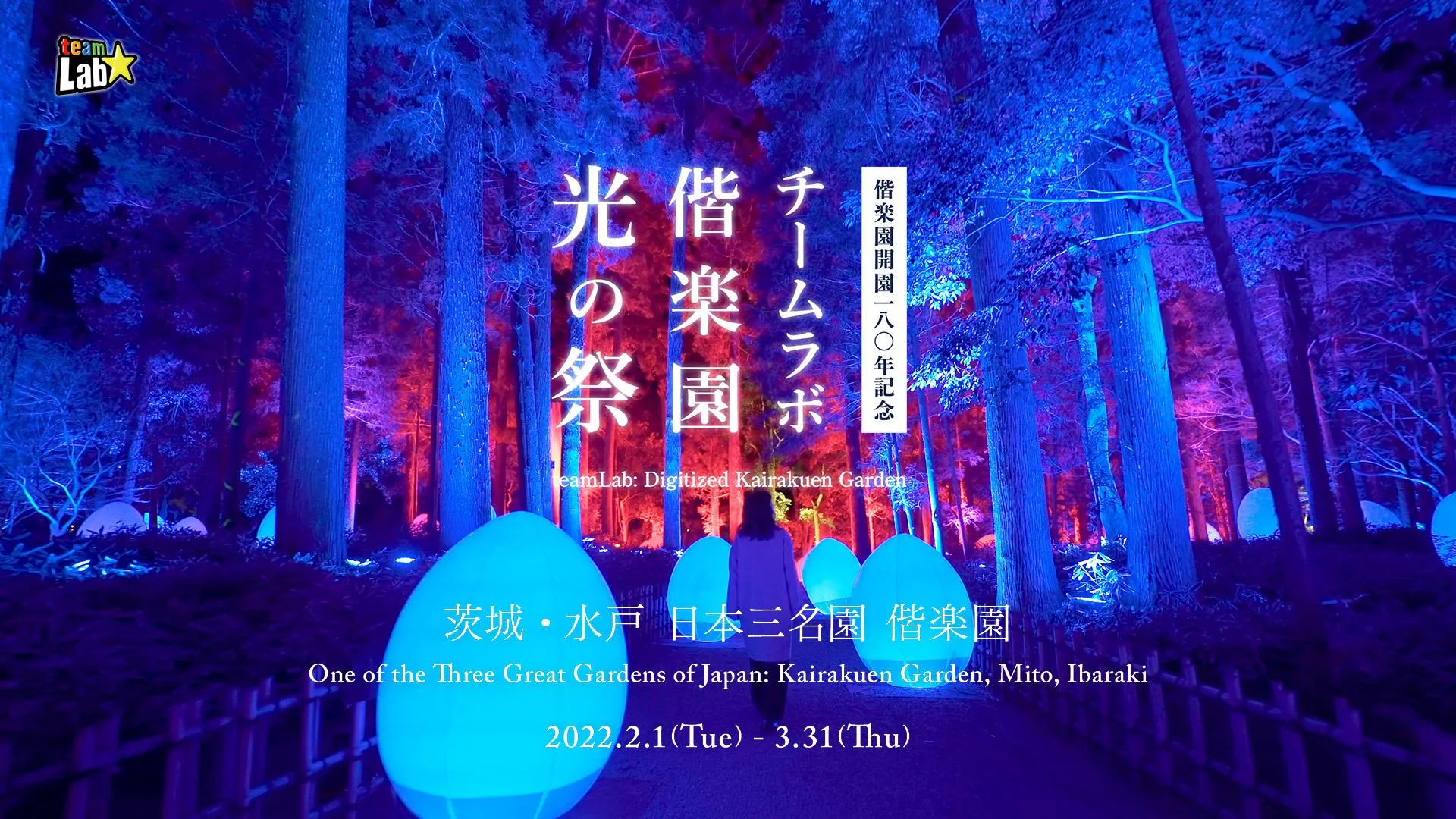 teamLab: Digitized Kairakuen Garden will transform this garden, where various types of plum trees bloom in spring, into an interactive art space that changes due to the presence of people.