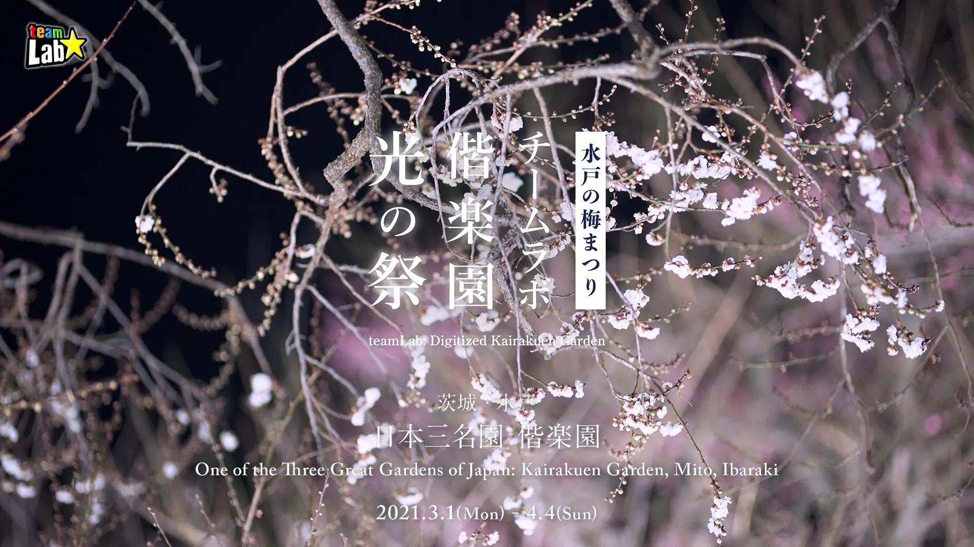 teamLab: Digitized Kairakuen Garden will transform this garden, where various types of plum trees bloom in spring, into an interactive art space that changes due to the presence of people.