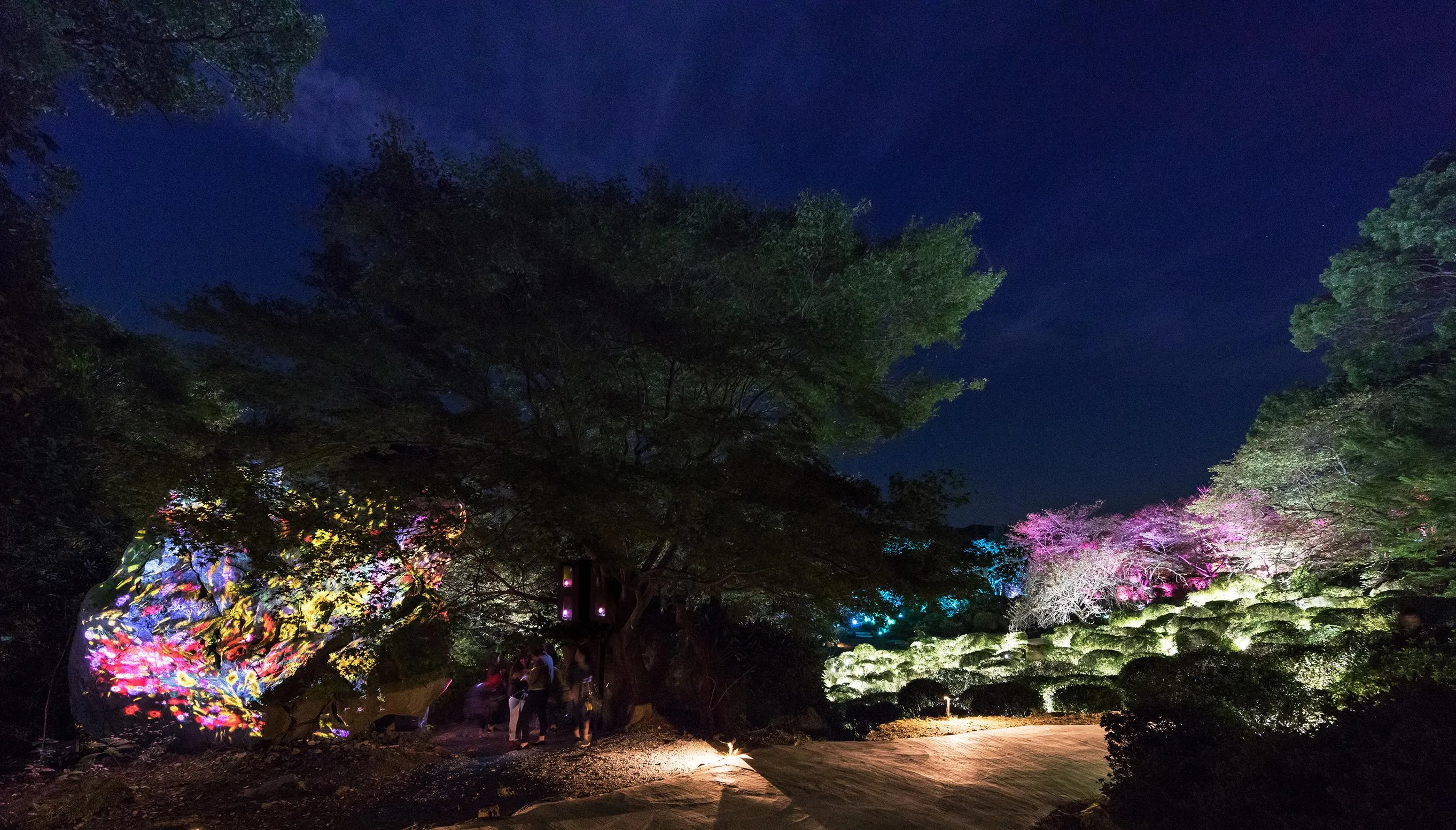 君たちの時代 常識敗れ 僕の目の前にあるのは、こけが生えた巨大な岩。これに、地元の花々が咲いては散っていく1年間の様子を映し出しています。 佐賀県武雄市の庭園「御船山楽園」で開催中の「かみさまがすまう森のアート展」。夜間の幻想的な雰囲気の中で自然と人間がかかわってきた長い歩みを感じてほしいと企画しました。(Excerpt from the text)