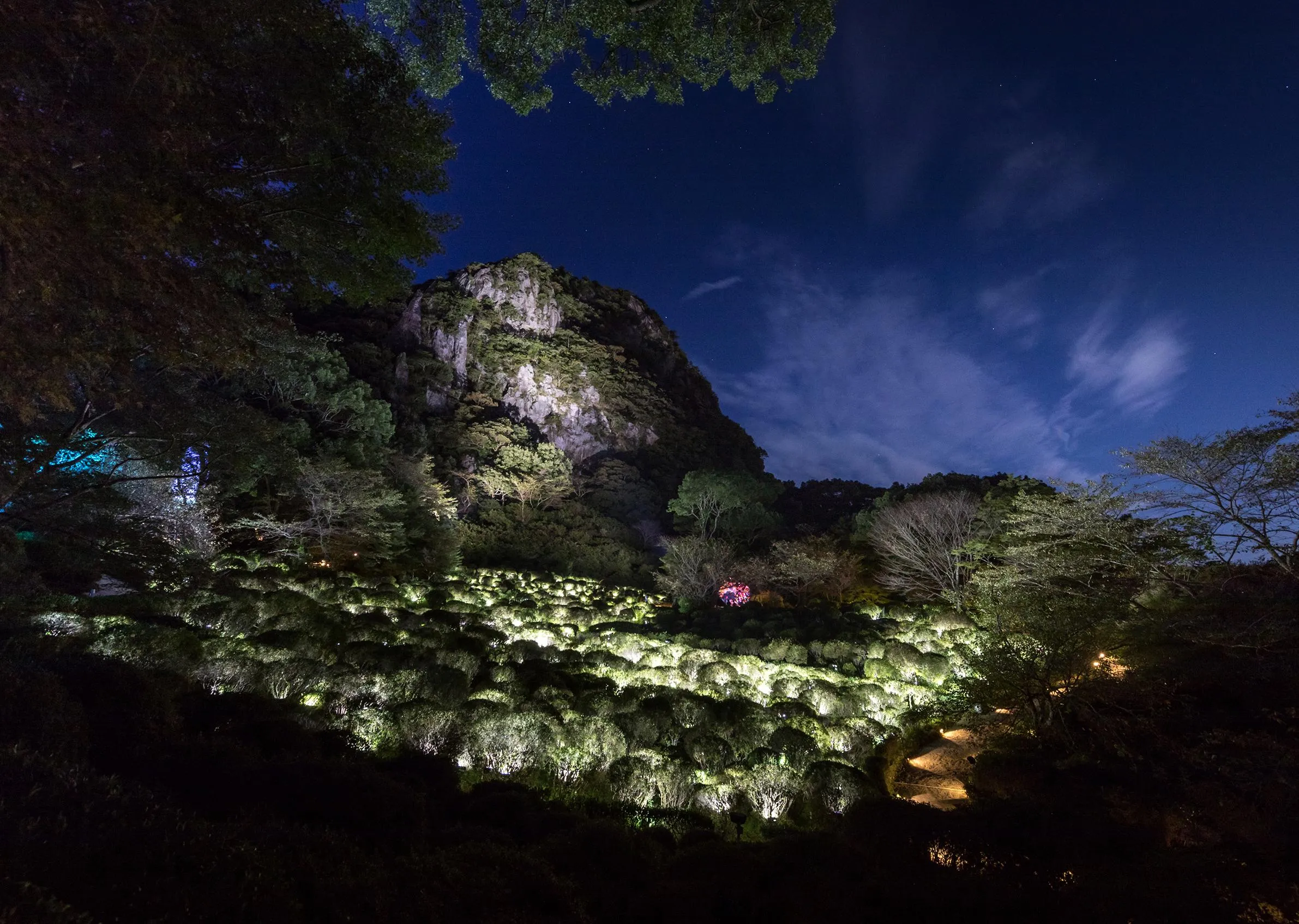 沒有錯,在花費了300萬年時間所形成的森林、巨石與洞窟中,還存在著人們花費了千年以上時間尋找其意義的御船山樂園。而且直到現在,自然與人類的活動以及森林與庭園的境界之間依舊保持著曖昧的狀態,才創造出如今這個舒適而美麗的文化遺產。