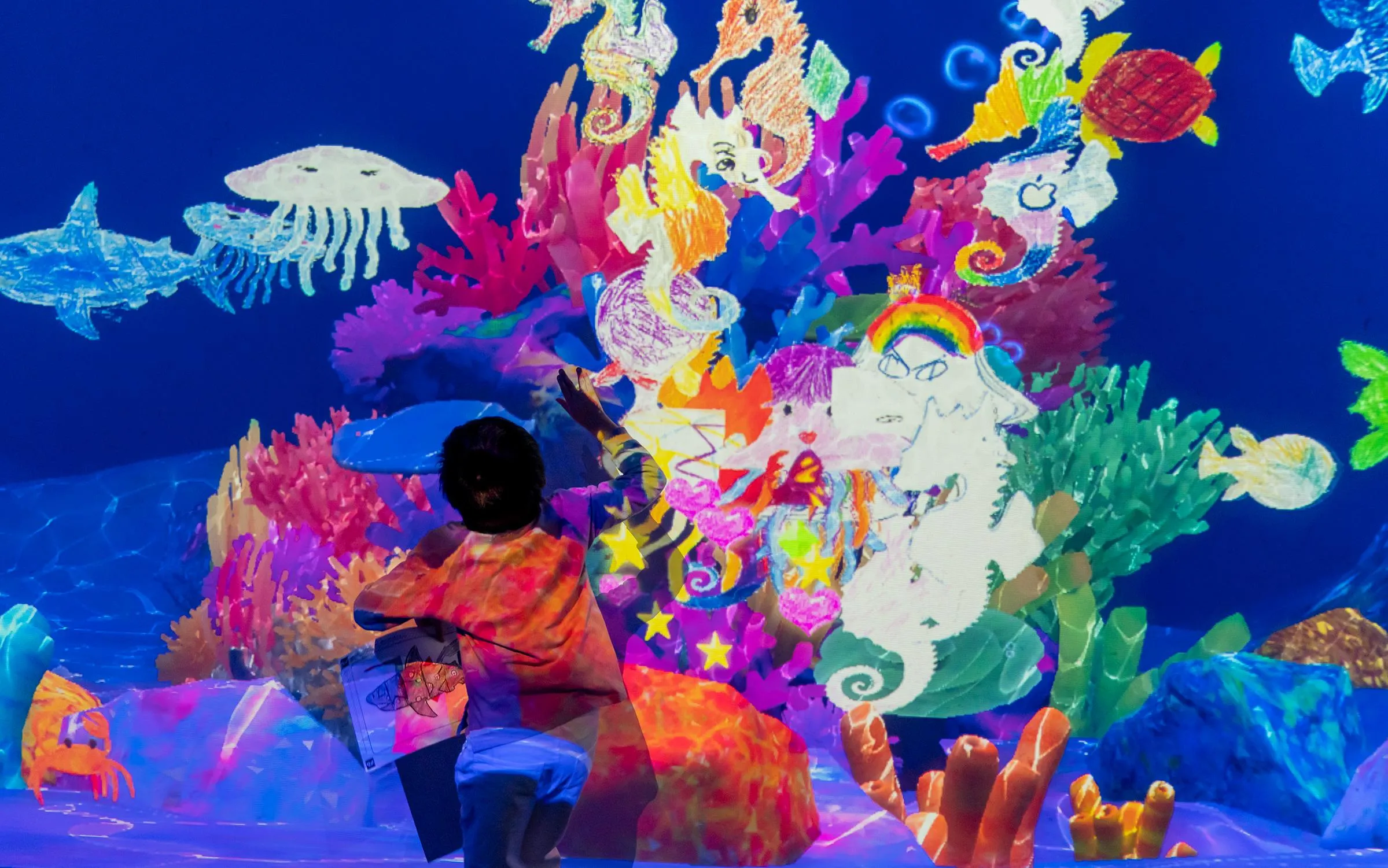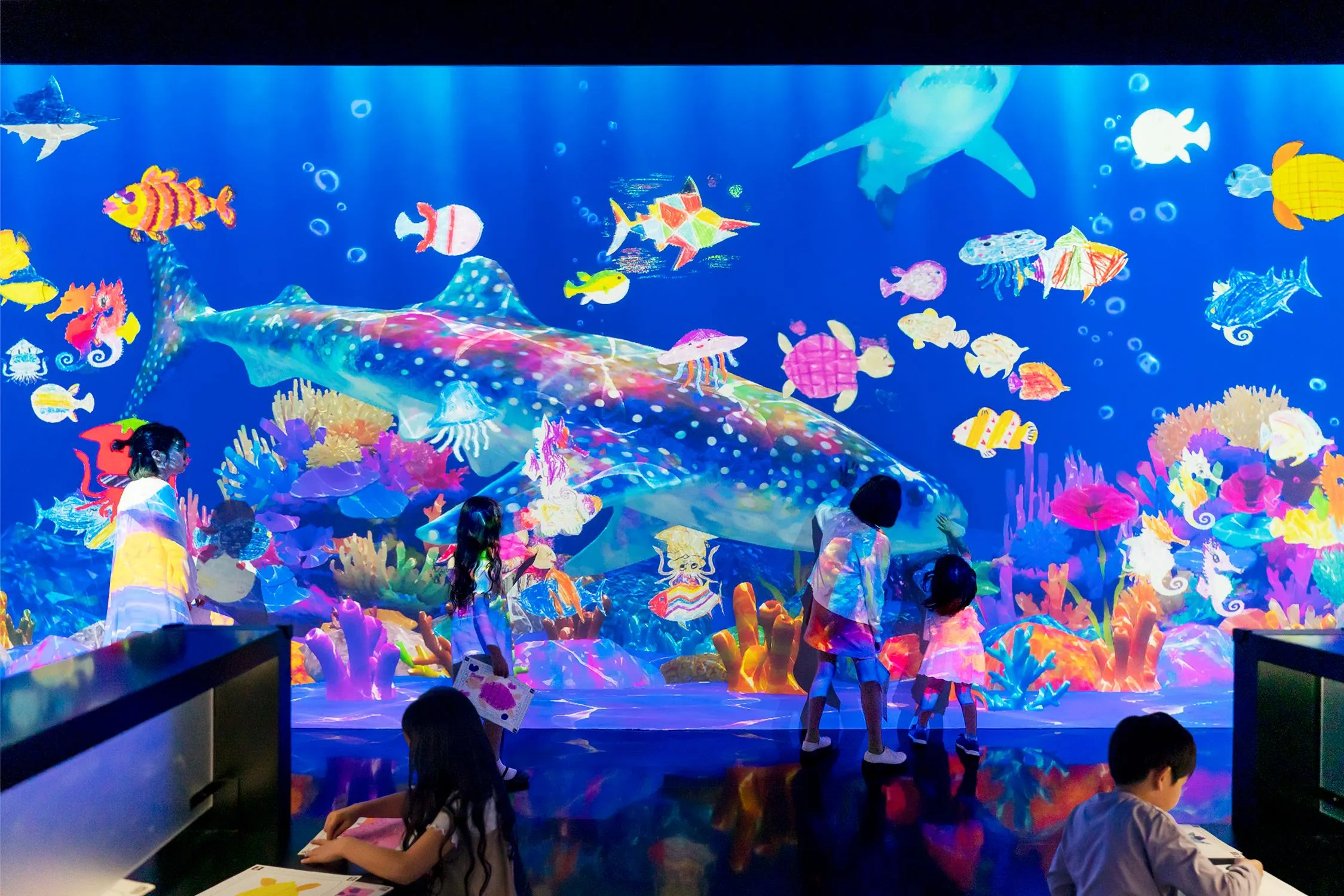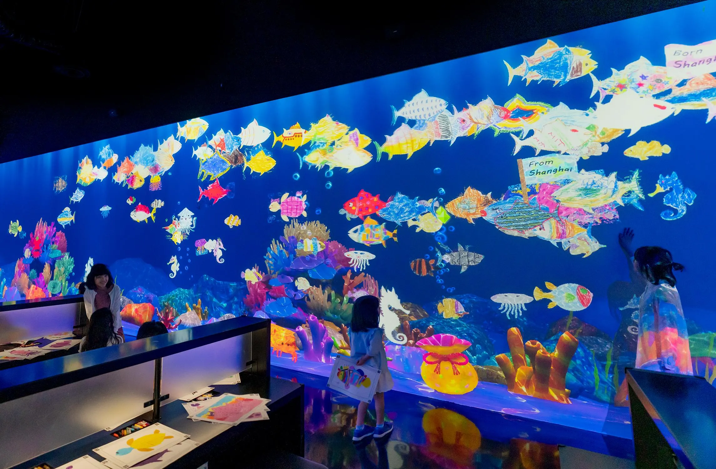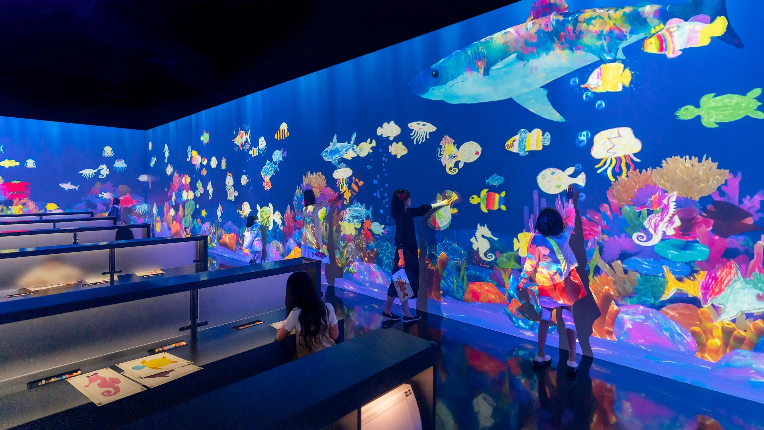 在紙上隨意描繪魚的圖案,隨之被描繪的圖案,會像被注入了生命一樣,游入眼前巨大的水族館中。