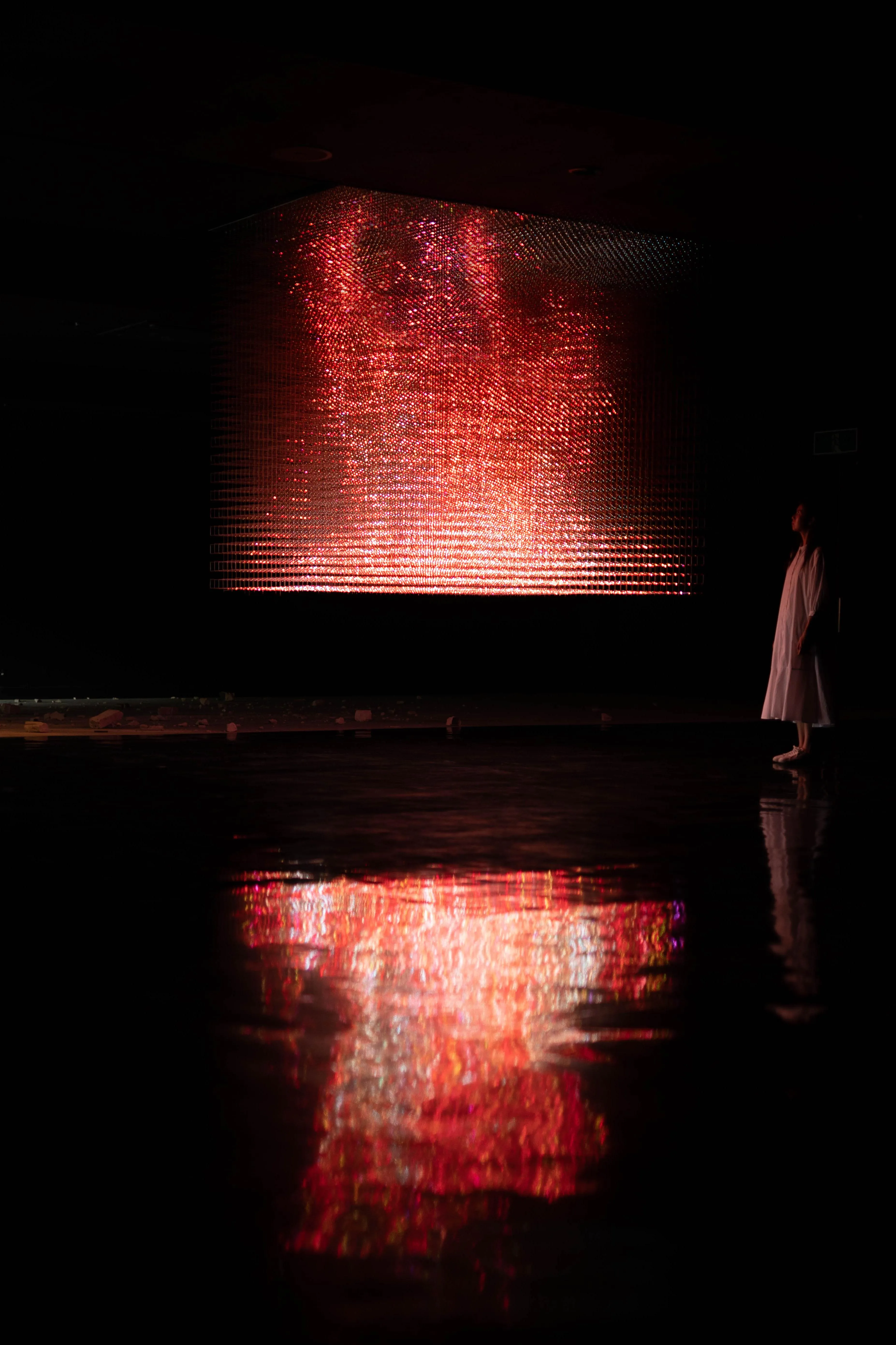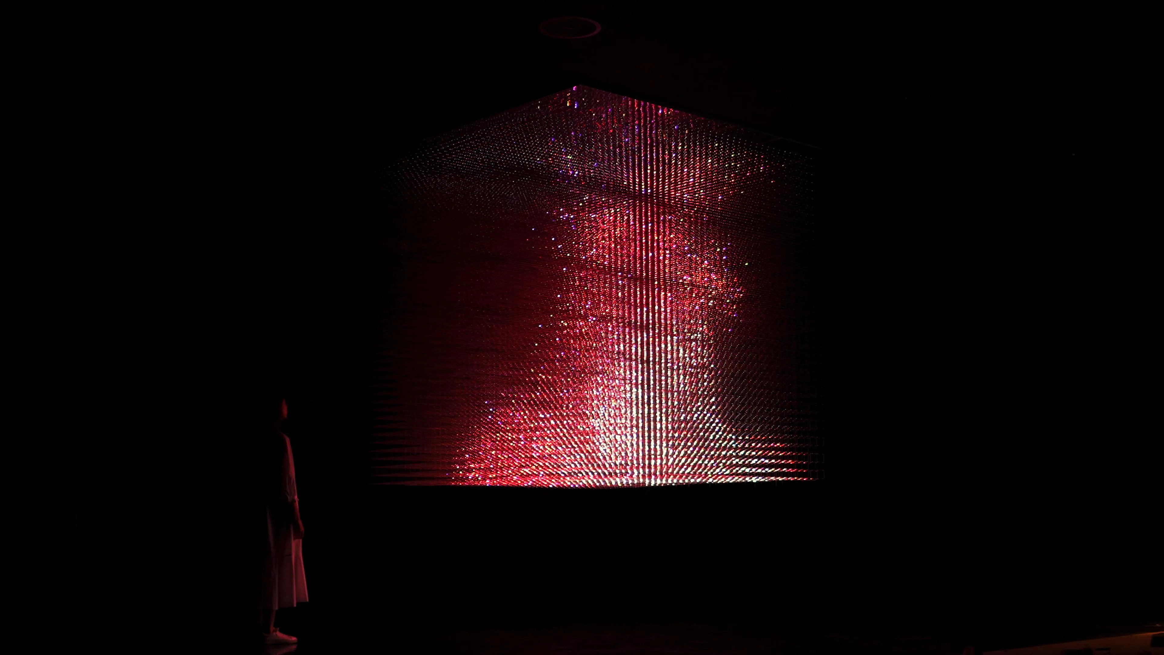 本作品是通過點狀光的集合來創造三維物體的火焰的互動雕塑作品。此創作方式類似於點彩繪畫,即用各色彩點來繪制圖像。