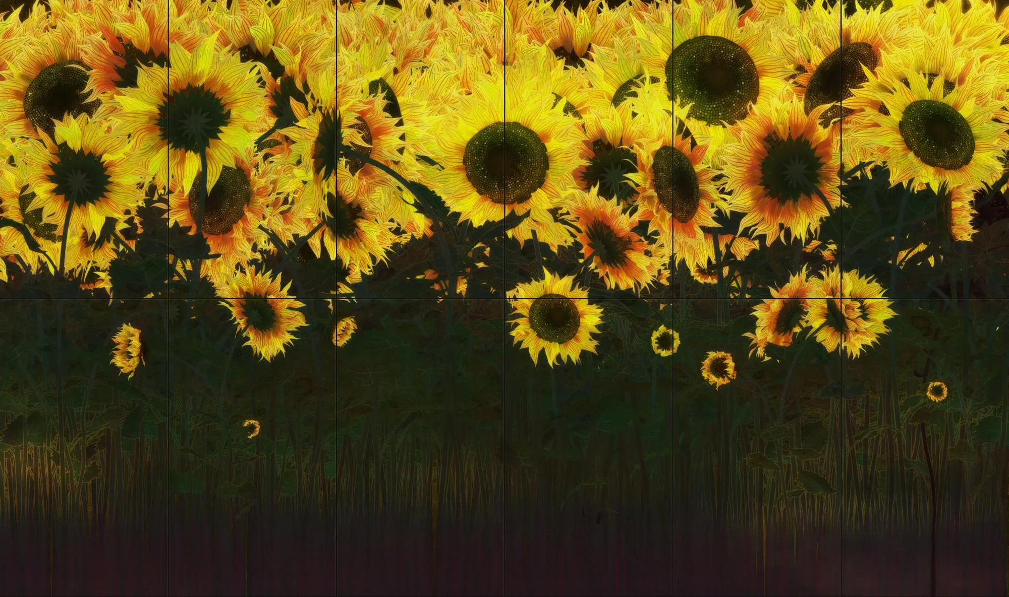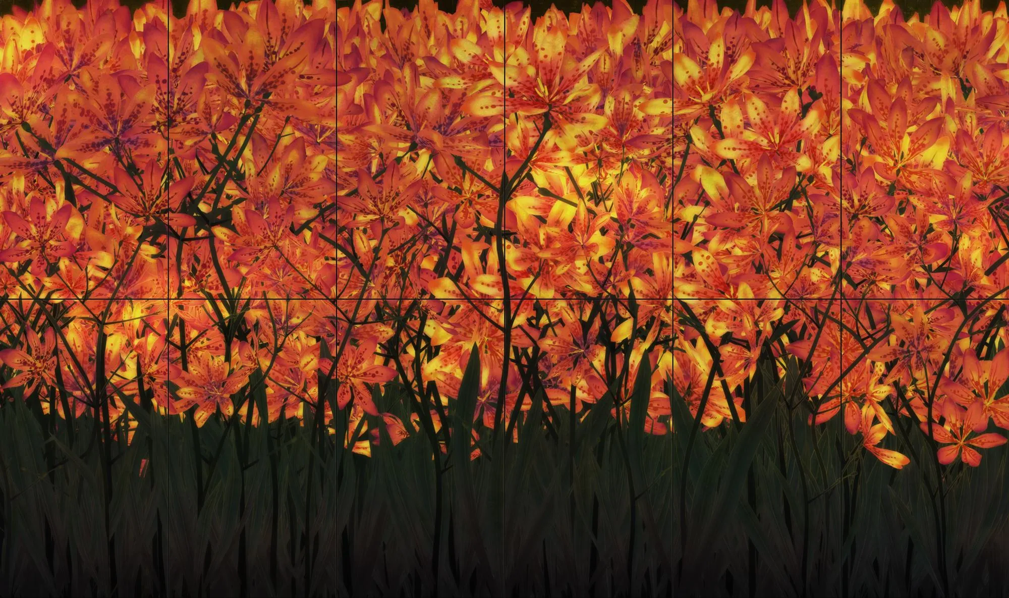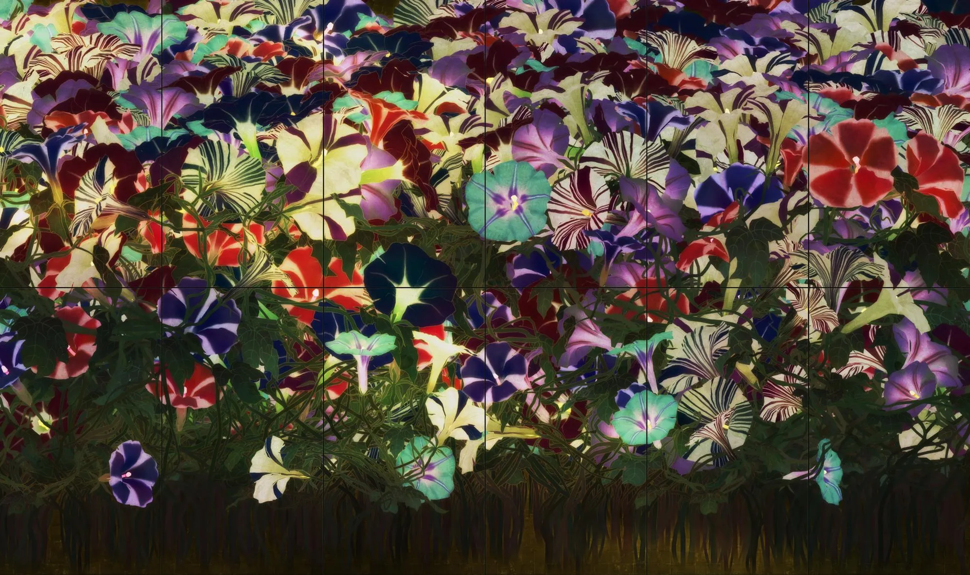 teamLab, 2023, Interactive Digital Work, 12 channels (6 channels x 2 rows), Sound: Hideaki Takahashi