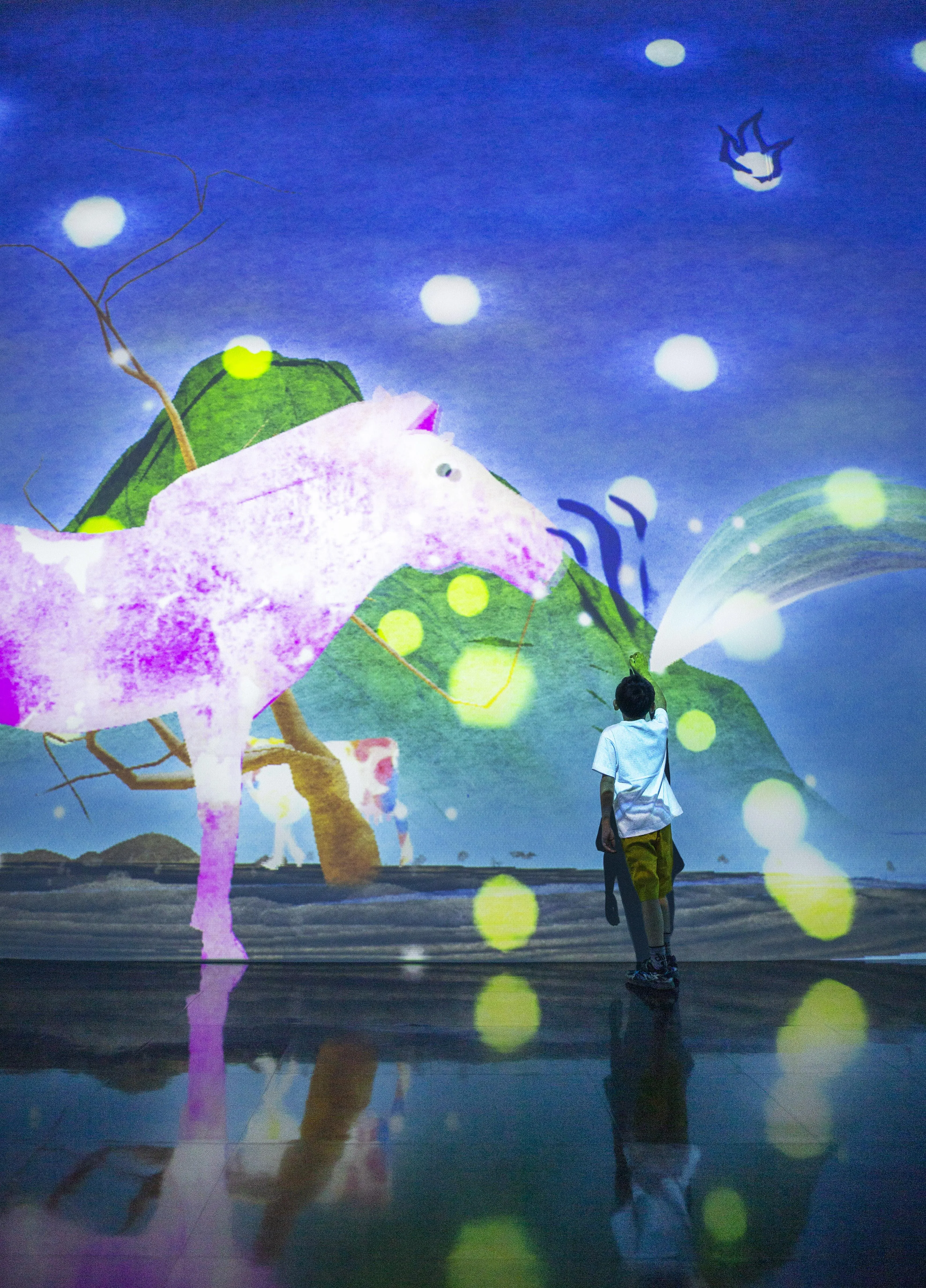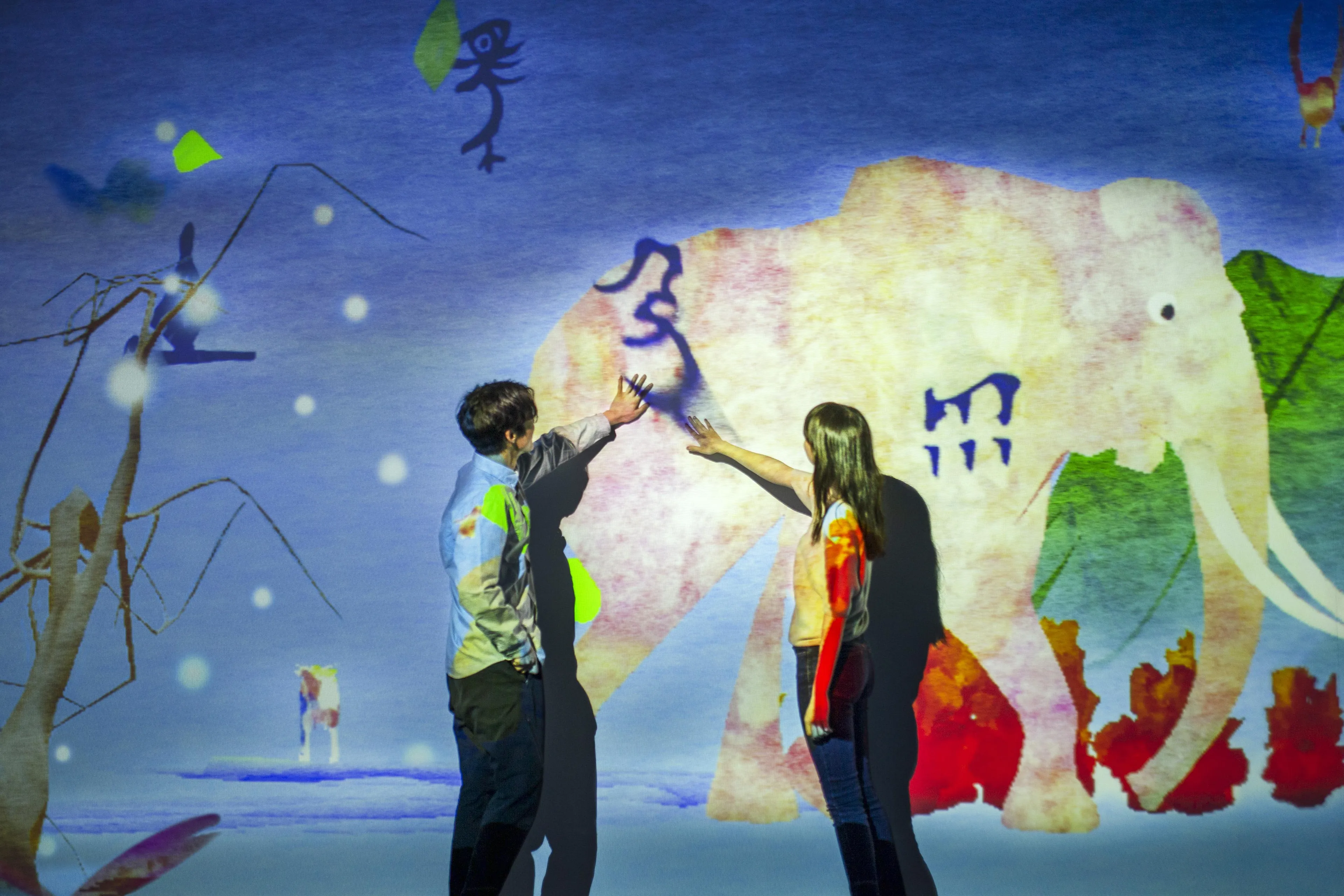 Sisyu + teamLab, 2013-, Interactive Digital Installation, Calligraphy: Sisyu, Sound: Hideaki Takahashi