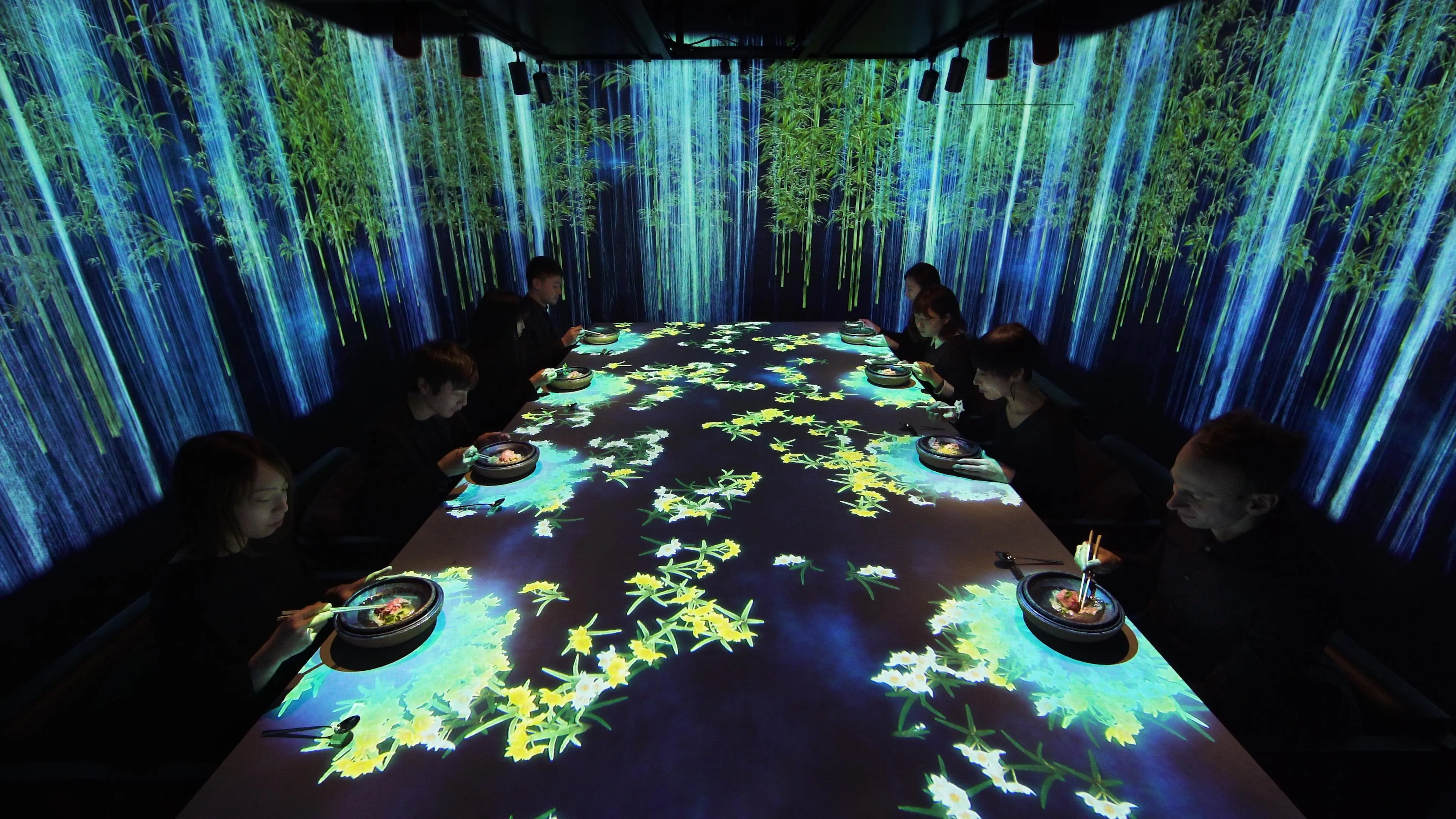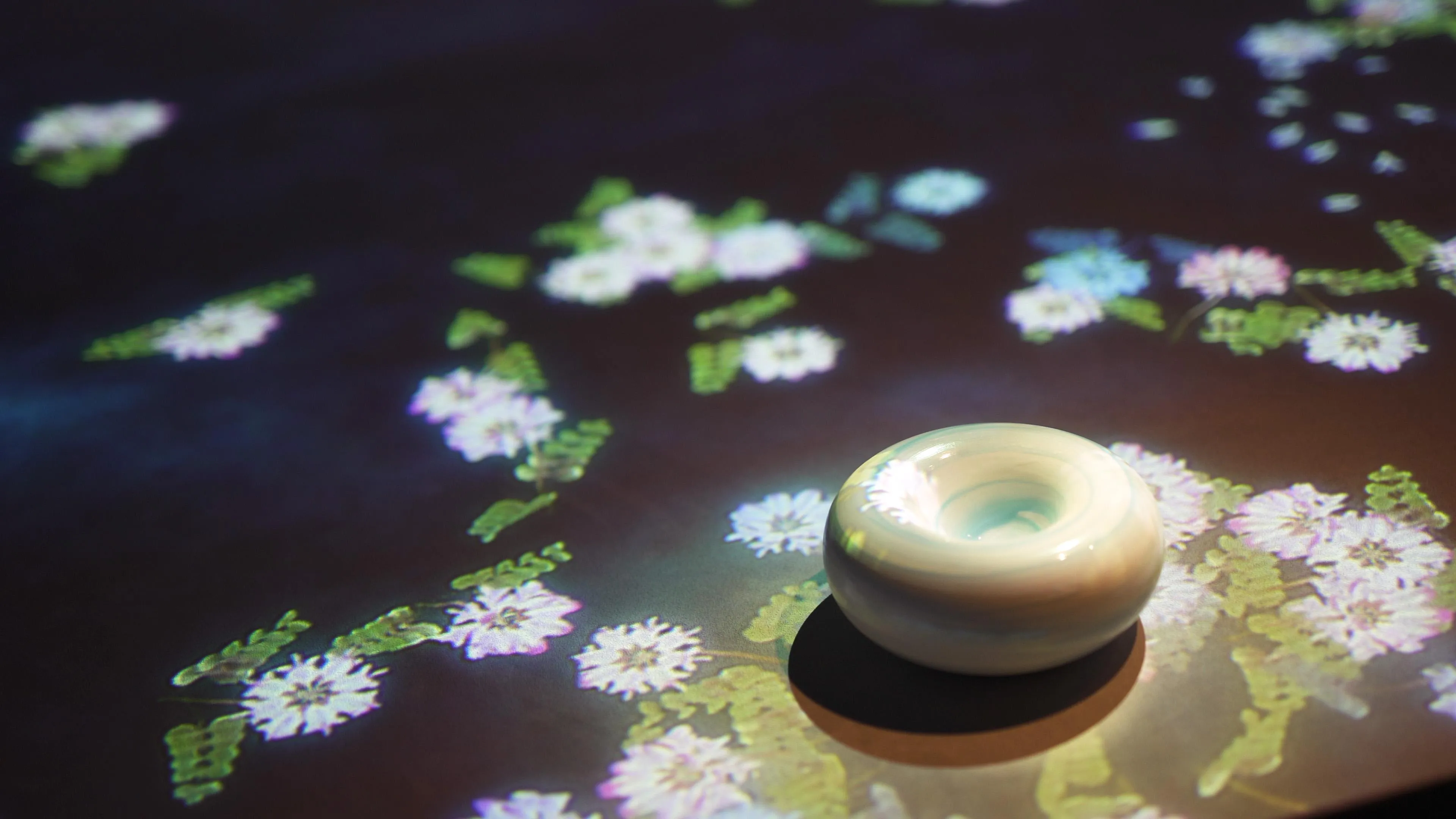 任何被放在桌上的物品,都會被人工智能所檢測到。因此,觀賞者們可以自由地將器皿放置到自己喜歡的位置上。